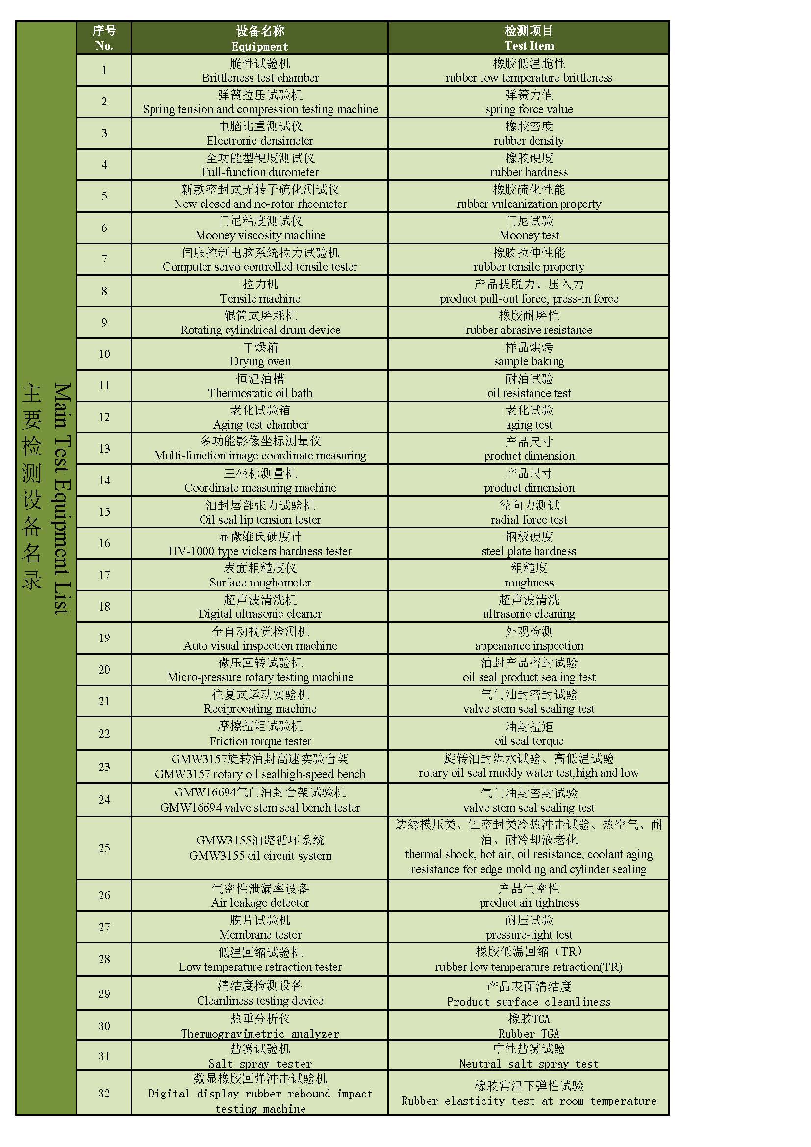 檢測設備名錄